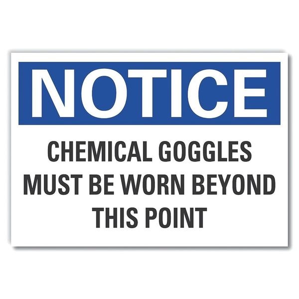 Notice, Chemical Goggles Must Be Worn Beyond This Point, 7 in W x 5 in H, Horizontal Rectangle