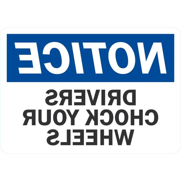 Notice Drivers Chock Your Wheels *Mirror Image*, 10x7, Non-Reflective, White