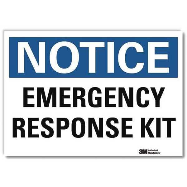 Notice Sign, Horizontal Rectangle, Number of Printed Sides 1, English, Sign Legend Emergency Response Kit, Sign Legend Background Color White, Sign Legend Style Text