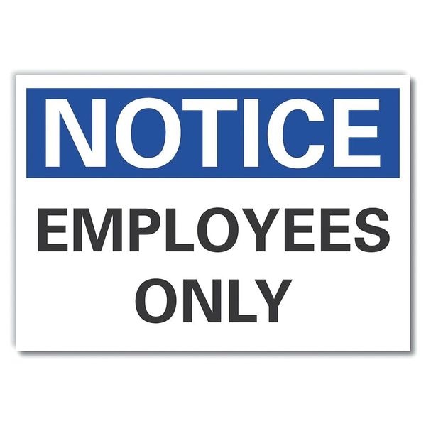 Notice Sign, Horizontal Rectangle, Number of Printed Sides 1, English, Sign Format Traditional OSHA, Sign Legend Employees Only, Sign Legend Background Color White, Sign Legend Style Text