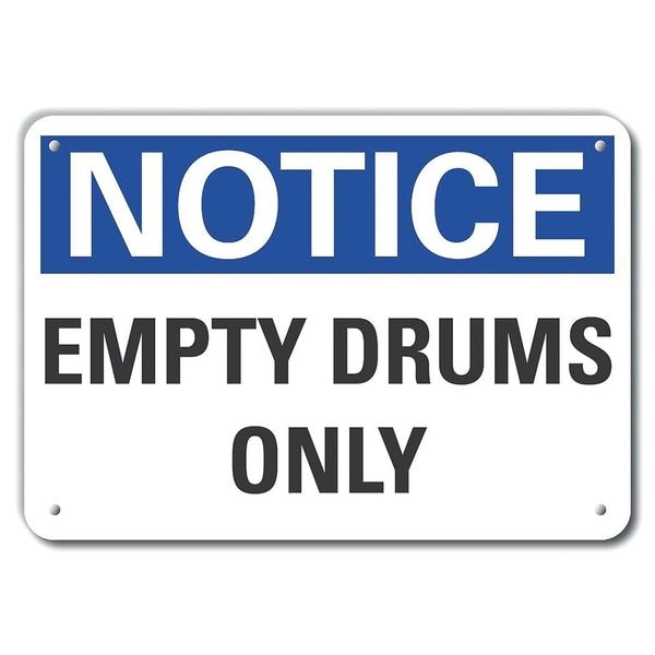 Notice, Empty Drums Only, 10 in W x 7 in H, Vertical Rectangle, Plastic