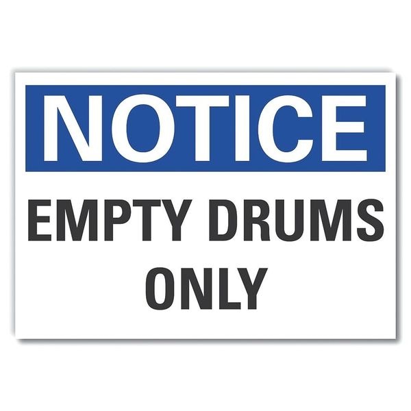 Notice, Empty Drums Only, 7 in W x 5 in H, Horizontal Rectangle, Polyester