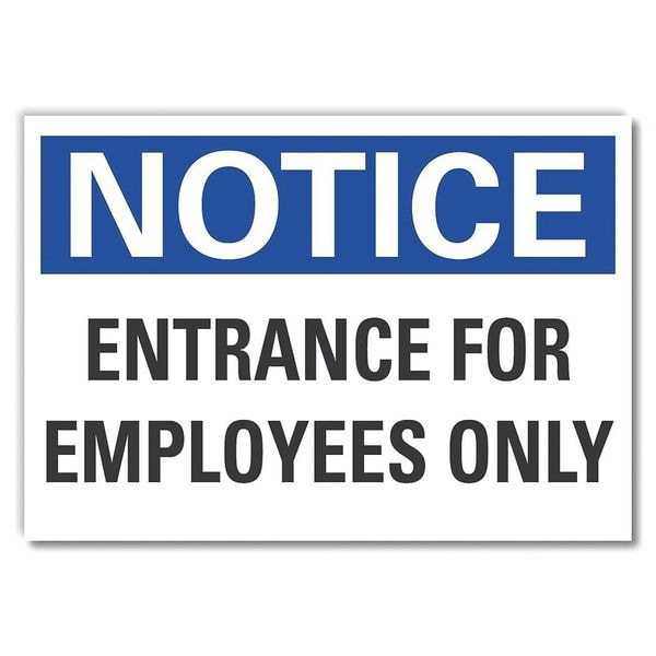 Entrance Sign, Horizontal Rectangle, Number of Printed Sides 1, English, Sign Format Traditional OSHA, Sign Legend Entrance For Employees Only, Sign Legend Background Color White, Sign Legend Style Text