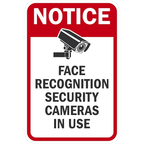 Notice Face Recognition Security Cameras In Use, 12x18, Engineer Grade, White