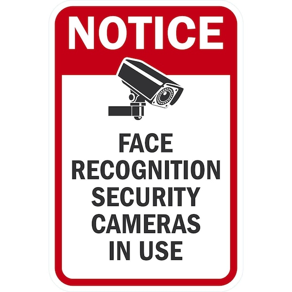 Notice Face Recognition Security Cameras In Use, 12x18, High Intensity Prismatic, White
