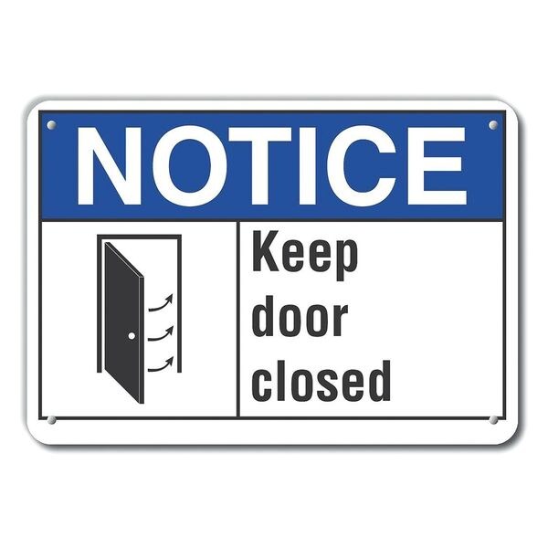 Notice, Keep Door Closed, 10 in W x 7 in H, Vertical Rectangle, Plastic