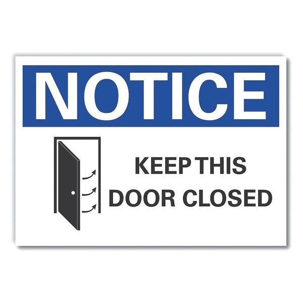 Notice, Keep This Door Closed, 14 in W x 10 in H, Horizontal Rectangle, Polyester