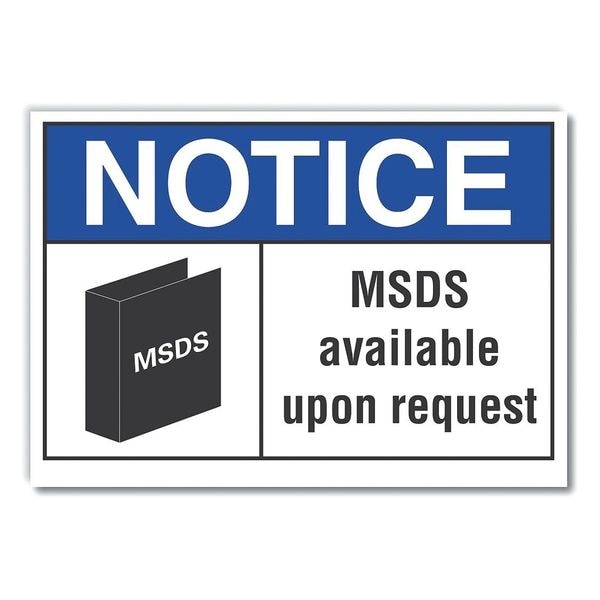Notice, MSDS Available Upon Request, 7 in W x 5 in H, Horizontal Rectangle, Polyester
