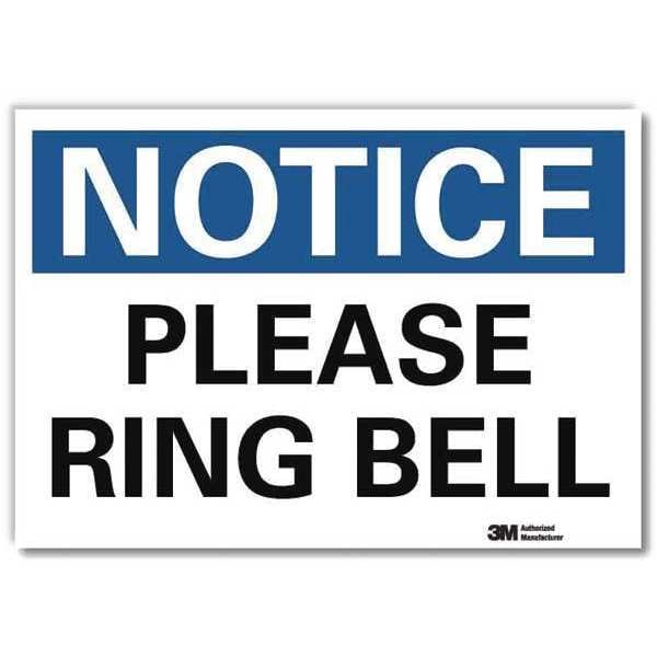 Notice, Please Ring Bell, 5 in x 7 in, Horizontal Rectangle, Reflective Sheeting, U5-1454-RD_7X5