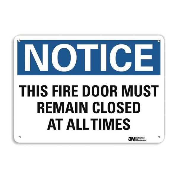 Notice Sign, Horizontal Rectangle, Number of Printed Sides 1, English, Sign Format Traditional OSHA, Sign Legend This Fire Door Must Remain Closed At All Times, Sign Legend Background Color White, Sign Legend Style Text