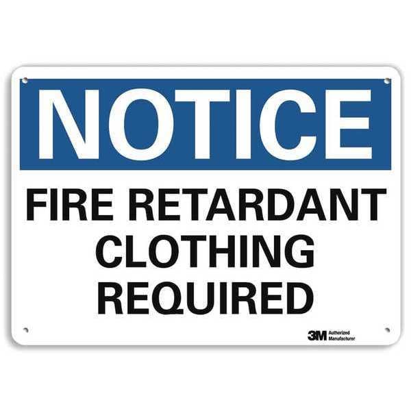 Notice Sign, Horizontal Rectangle, Number of Printed Sides 1, English, Sign Format Traditional OSHA, Sign Legend Fire Retardant Clothing Required, Sign Legend Background Color White, Sign Legend Style Text