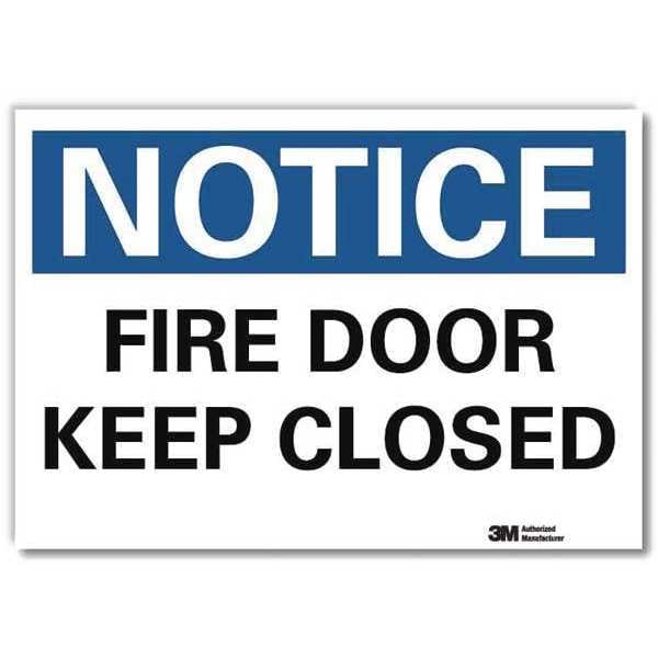 Notice Sign, Horizontal Rectangle, Number of Printed Sides 1, English, Sign Format Traditional OSHA, Sign Legend Fire Door Keep Closed, Sign Legend Background Color White, Sign Legend Style Text