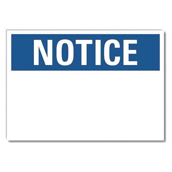 Notice Sign, 10" W, 7" H, English, Polyester, Blue, White