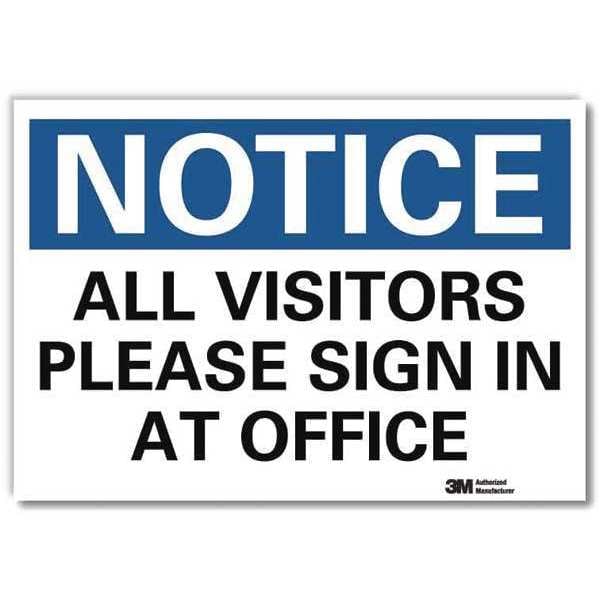 Notice Sign, Horizontal Rectangle, Number of Printed Sides 1, English, Sign Legend All Visitors Please Sign In At Office, Sign Legend Background Color White, Sign Legend Style Text