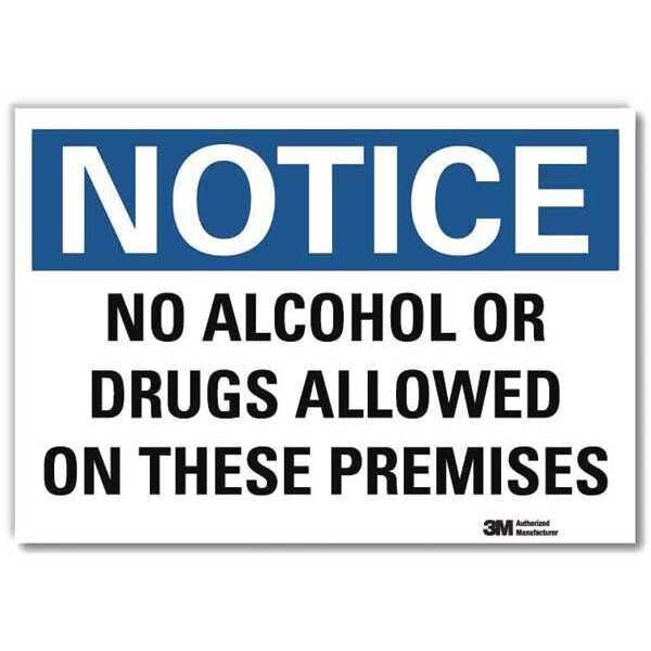 Notice Sign, Vertical Rectangle, Number of Printed Sides 1, English, Sign Format Traditional OSHA, Sign Legend No Alcohol Or Drugs Allowed On These Premises, Sign Legend Background Color White, Sign Legend Style Text