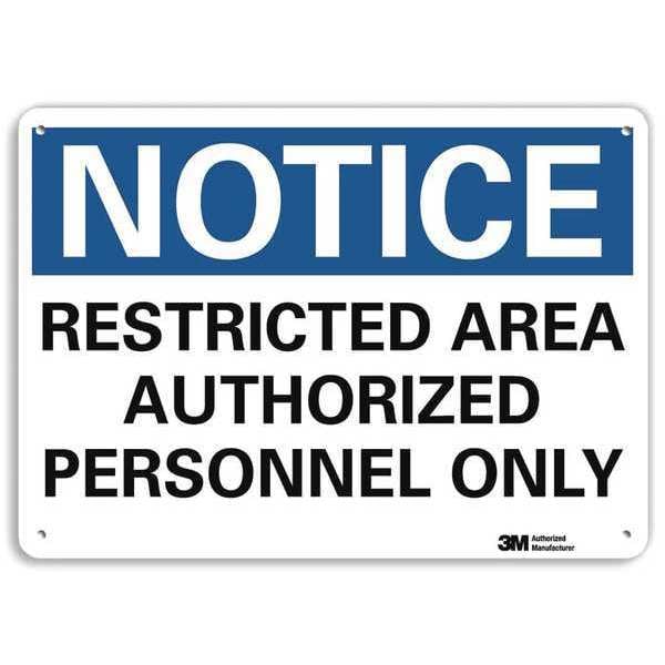Notice Sign, Vertical Rectangle, Number of Printed Sides 1, English, Sign Format Traditional OSHA, Sign Legend Restricted Area Authorized Personnel Only, Sign Legend Background Color White, Sign Legend Style Text