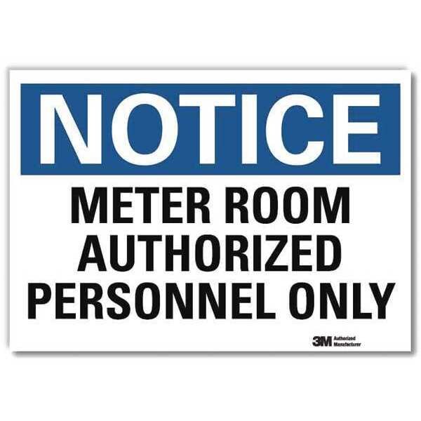 Notice Sign, Vertical Rectangle, Number of Printed Sides 1, English, Sign Format Traditional OSHA, Sign Legend Meter Room Authorized Personnel Only, Sign Legend Background Color White, Sign Legend Style Text