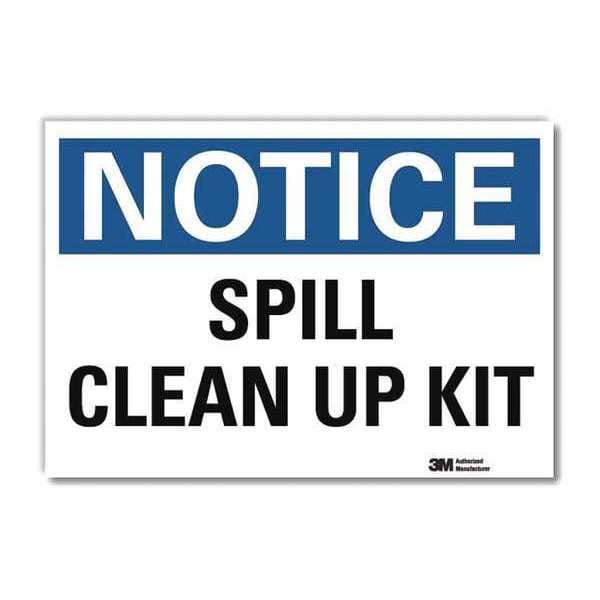 Notice Sign, Horizontal Rectangle, Number of Printed Sides 1, English, Sign Legend Spill Clean Up Kit, Sign Legend Background Color White, Sign Legend Style Text