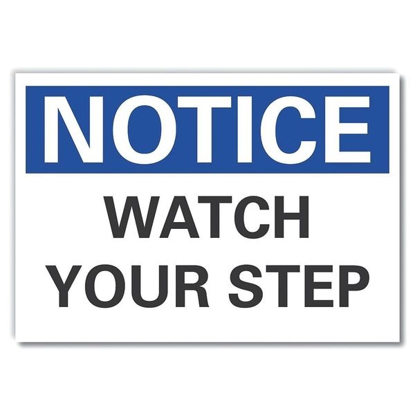 Steps Notice Label, Horizontal Rectangle, Number of Printed Sides 1, English, Sign Format Traditional OSHA, Sign Legend Watch Your Step, Sign Legend Background Color White, Sign Legend Style Text