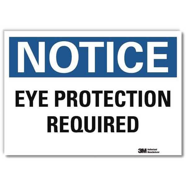 Notice Sign, Vertical Rectangle, Number of Printed Sides 1, English, Sign Format Traditional OSHA, Sign Legend Eye Protection Required, Sign Legend Background Color White, Sign Legend Style Text
