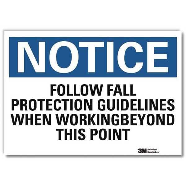 Notice Sign, Vertical Rectangle, Number of Printed Sides 1, English, Sign Format Traditional OSHA, Sign Legend Follow Fall Protection Guidelines When Working Beyond This Point, Sign Legend Background Color White, Sign Legend Style Text