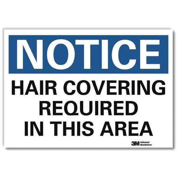 Notice Sign, Vertical Rectangle, Number of Printed Sides 1, English, Sign Format Traditional OSHA, Sign Legend Hair Covering Required In This Area, Sign Legend Background Color White, Sign Legend Style Text