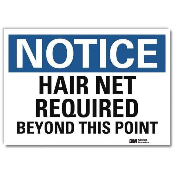 Notice Sign, Vertical Rectangle, Number of Printed Sides 1, English, Sign Format Traditional OSHA, Sign Legend Hair Net Required Beyond This Point, Sign Legend Background Color White, Sign Legend Style Text