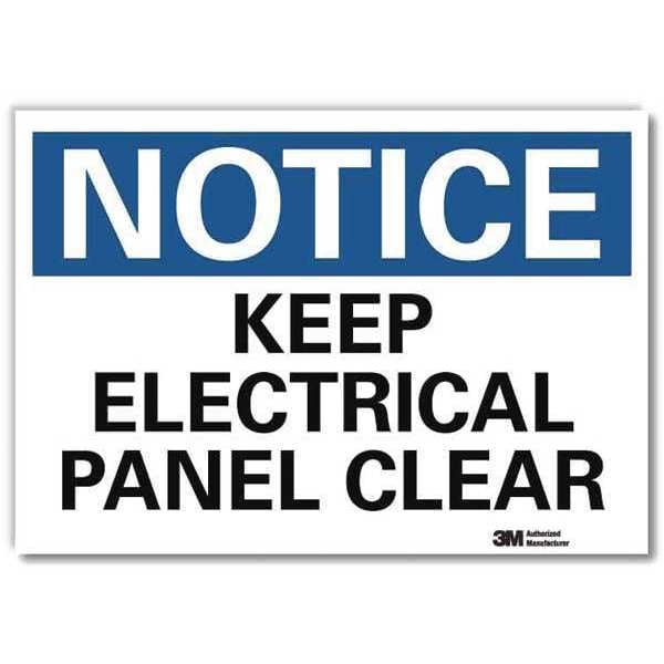 Notice Sign, Vertical Rectangle, Number of Printed Sides 1, English, Sign Format Traditional OSHA, Sign Legend Keep Electrical Panel Clear, Sign Legend Background Color White, Sign Legend Style Text