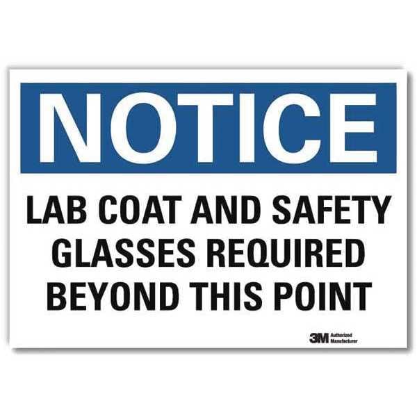 Notice Sign, Vertical Rectangle, Number of Printed Sides 1, English, Sign Format Traditional OSHA, Sign Legend Lab Coat And Safety Glasses Required Beyond This Point, Sign Legend Background Color White, Sign Legend Style Text