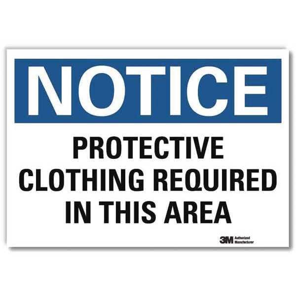 Notice Sign, Vertical Rectangle, Number of Printed Sides 1, English, Sign Format Traditional OSHA, Sign Legend Protective Clothing Required In This Area, Sign Legend Background Color White, Sign Legend Style Text