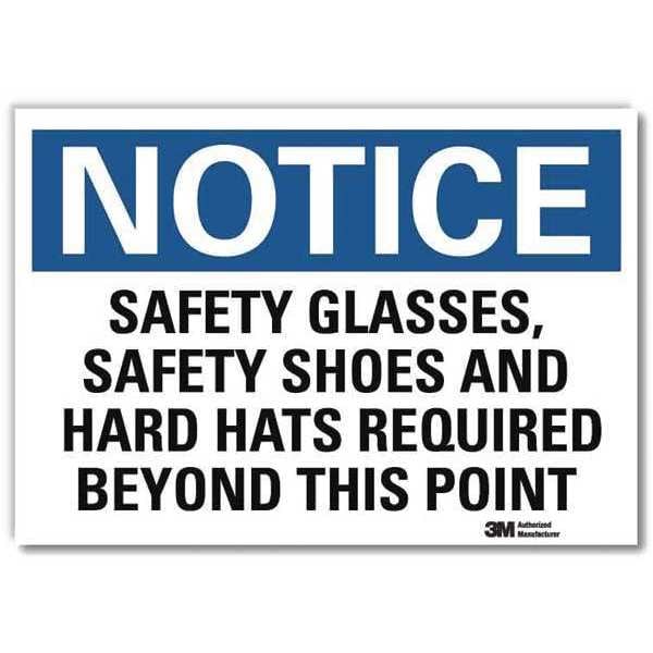 Notice Sign, Vertical Rectangle, Number of Printed Sides 1, English, Sign Format Traditional OSHA, Sign Legend Safety Glasses Safety Shoes And Hard Hats Required Beyond This Point, Sign Legend Background Color White, Sign Legend Style Text
