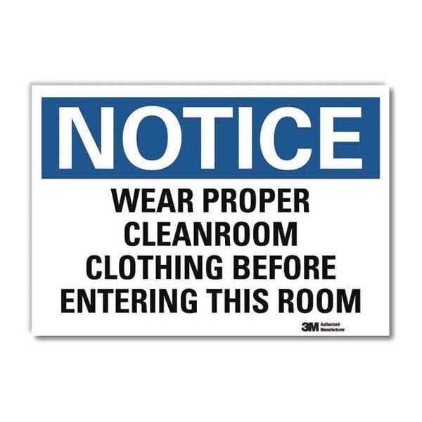 Notice Sign, Vertical Rectangle, Number of Printed Sides 1, English, Sign Format Traditional OSHA, Sign Legend Wear Proper Cleanroom Clothing Before Entering This Room, Sign Legend Background Color White, Sign Legend Style Text