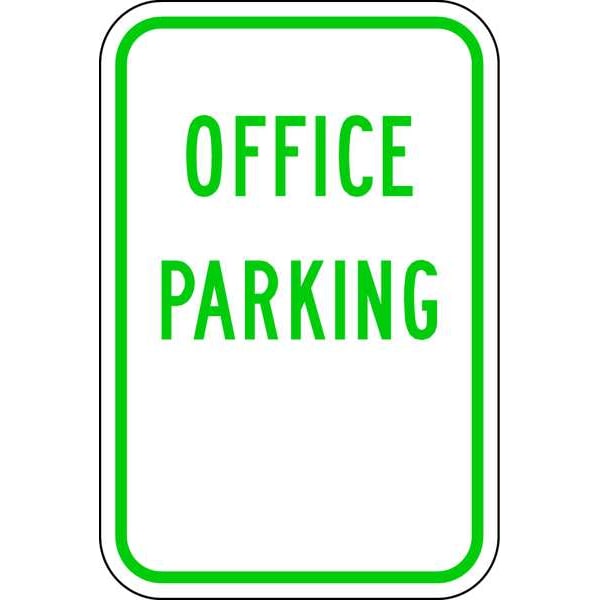Office Parking Sign, Height 18 in, Width 12 in, Sign Material Aluminum, Sign Mounting Style Mounting Holes, Printed Language English, Sign Shape Vertical Rectangle