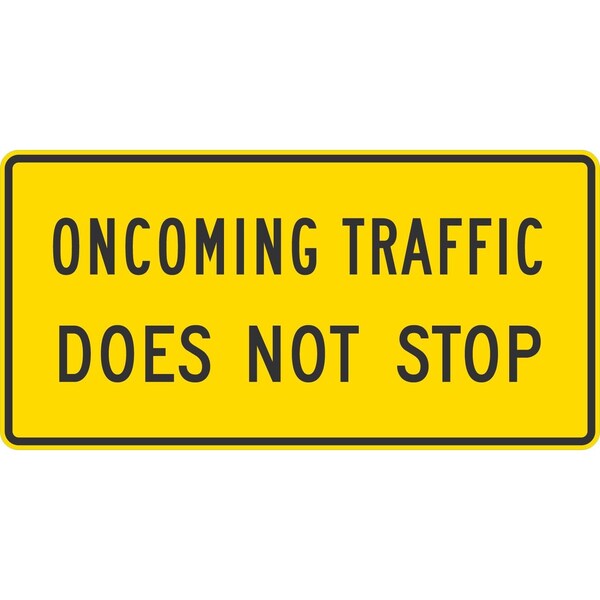 Oncoming Traffic Does Not Stop, 48x24, Diamond Grade, Yellow