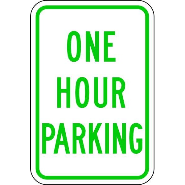 One Hour Parking Parking Sign, Height 18 in, Width 12 in, Sign Material Aluminum, Sign Mounting Style Mounting Holes, Printed Language English, Sign Shape Vertical Rectangle