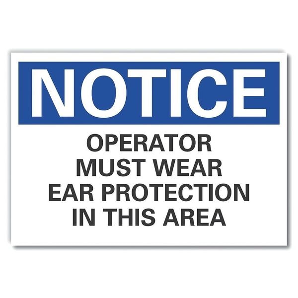 Hearing Notice Reflective Label, Horizontal Rectangle, Number of Printed Sides 1, English, Sign Format ANSI/OSHA Format, Sign Legend Operator Must Wear Ear Protection In This Area, Sign Legend Background Color White, Sign Legend Style Text