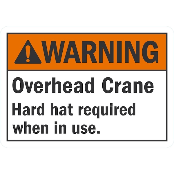 Overhead Crane, Hard Hat Required When In Use, 10x7, Non-Reflective, White
