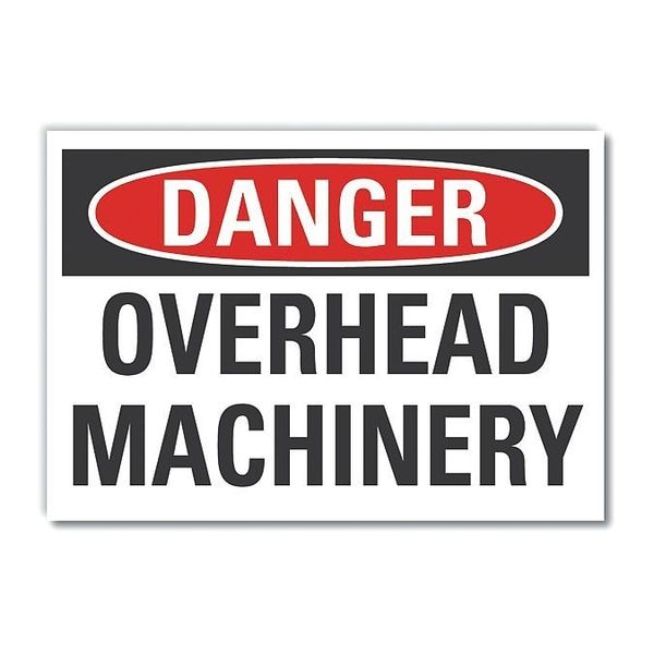 Overhead Hazard Danger Label, Vertical Rectangle, Number of Printed Sides 1, English, Sign Format Traditional OSHA, Sign Legend Overhead Machinery, Sign Legend Background Color White, Sign Legend Style Text