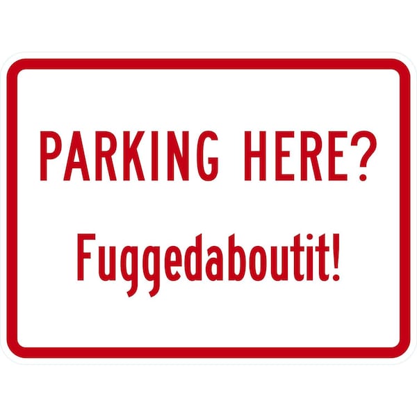 Parking Here? Fuggedaboutit, 24x18, Engineer Grade, White