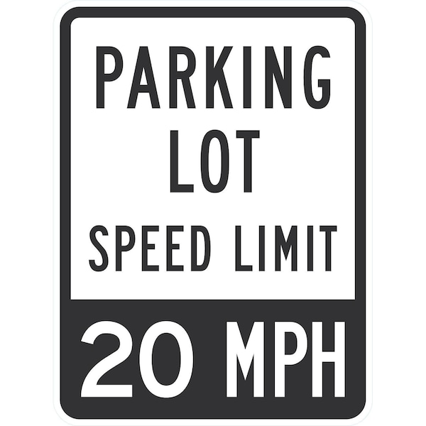Parking Lot Speed Limit 20 Mph, 18x24, Non-Reflective, White