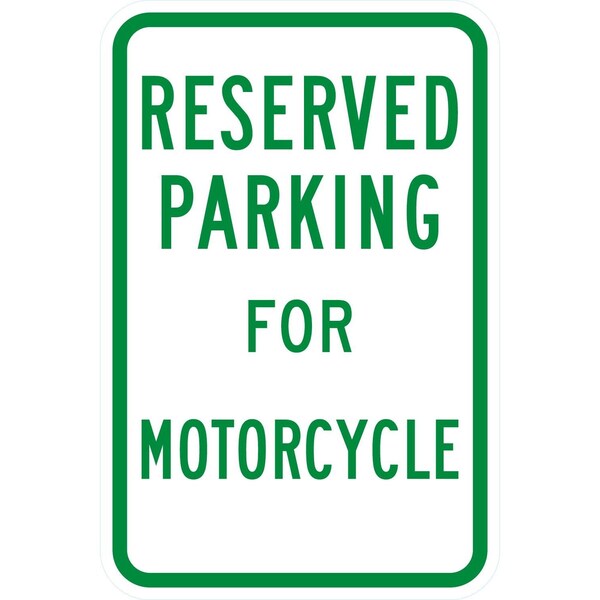 Parking Reserved For Motorcycle, 12x18, Diamond Grade, White