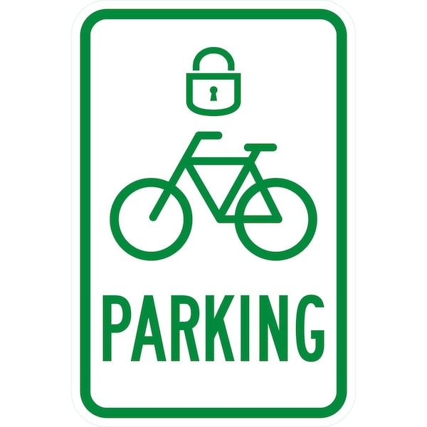 Parking (with Cycle and Lock Symbol), 12x18, Diamond Grade, White