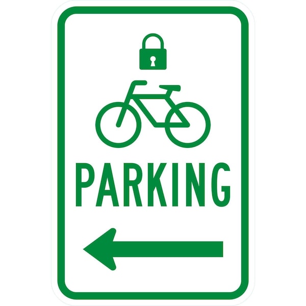 Parking (with Lock, Cycle & Left Arrow Symbol), 12x18, Engineer Grade, White