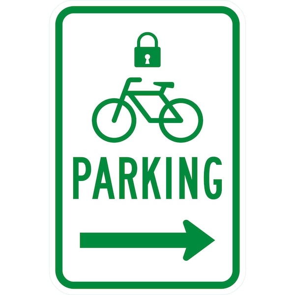 Parking (with Lock, Cycle & Right Arrow Symbol), 12x18, Engineer Grade, White