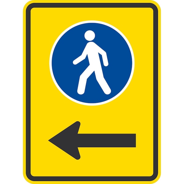 Pedestrian graphic with left arrow, 18x24, Non-Reflective, Yellow