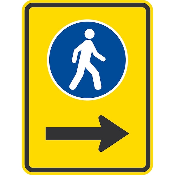 Pedestrian graphic with right arrow, 18x24, Engineer Grade, Yellow