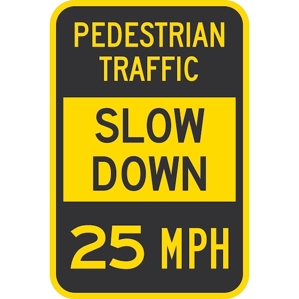 Pedestrian Traffic Slow Down 25 MPH, 12x18, Non-Reflective, Yellow