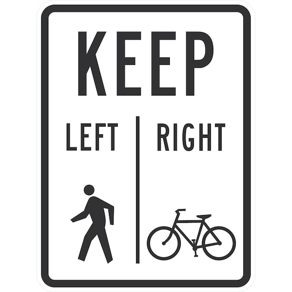 Pedestrians Keep Left Bicycles Keep Right Sign, 18x24, Engineer Grade, White