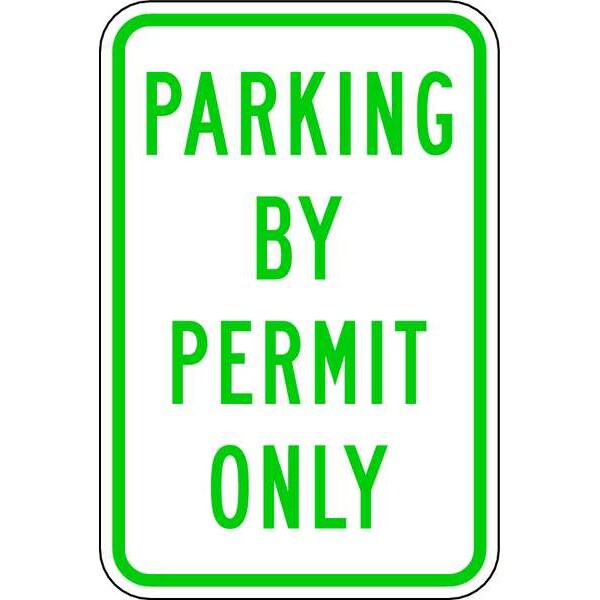 Permit Parking Sign, Height 18 in, Width 12 in, Sign Material Aluminum, Sign Mounting Style Mounting Holes, Printed Language English, Sign Shape Vertical Rectangle
