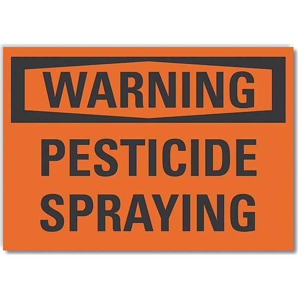 Pesticide Warning Label, Vertical Rectangle, Number of Printed Sides 1, English, Sign Format Traditional OSHA, Sign Legend Pesticide Spraying, Sign Legend Background Color Orange, Sign Legend Style Text